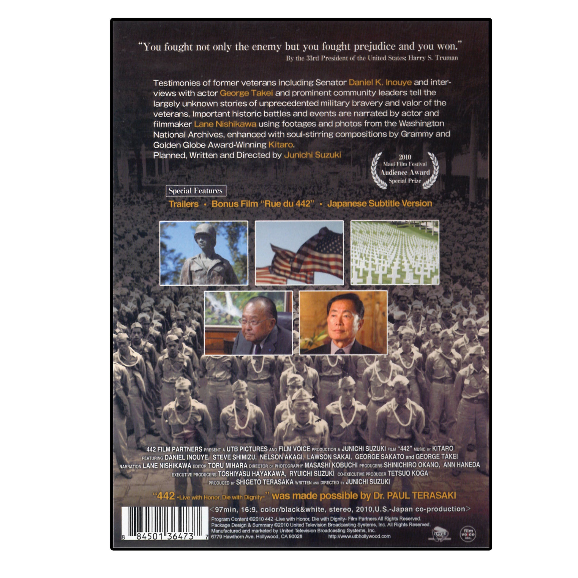 442: Live with Honor, Die with Dignity” includes the testimony of veterans including Senator Daniel K. Inouye and interviews with actor George Takei and other prominent Japanese American community leaders. They tell the largely unknown stories of unprecedented military bravery and valor of the Japanese American veterans of WWII. Important historic battles and events are narrated by actor and filmmaker Lane Nishikawa using footage and photos from the Washington National Archives and enhanced with soul-stirring compositions by Grammy and Golden Globe Award-winning Kitaro.