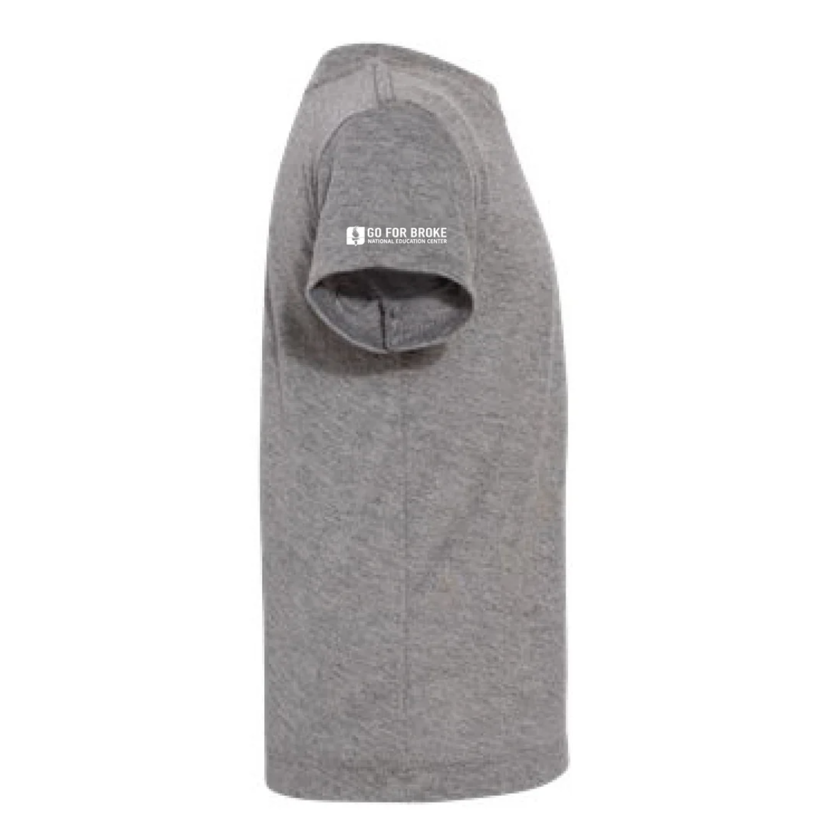 In Japanese, "Okage Sama De" translates to, "Because of you, I am," a phrase commonly spoken to our Nisei veterans. This one-of-a kind, unisex toddler tee plays off that phrase, and inadvertently pays homage to the brave Japanese American soldiers of World War II in a warm, sweet way. Made from triblend materials (50% polyester, 25% combed and ring spun cotton, and 25% rayon), these soft and stylish tees are great for everyday wear, photo shoots, birthday gifts, and more, making it the perfect addition to your little one's wardrobe!